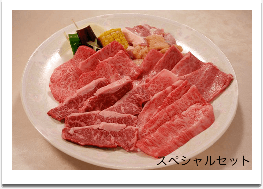 (上ロース・上カルビ・カルビ・ハラミ・ 上ミノ・鶏モモ・焼き野菜・キムチ盛り合わせ・チシャ)